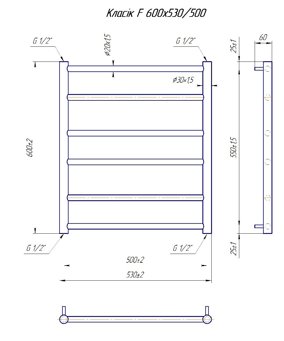ТЕХНИЧЕСКИЕ ХАРАКТЕРИСТИКИ полотенцесушителя MARIO Класcик F 600х530/500