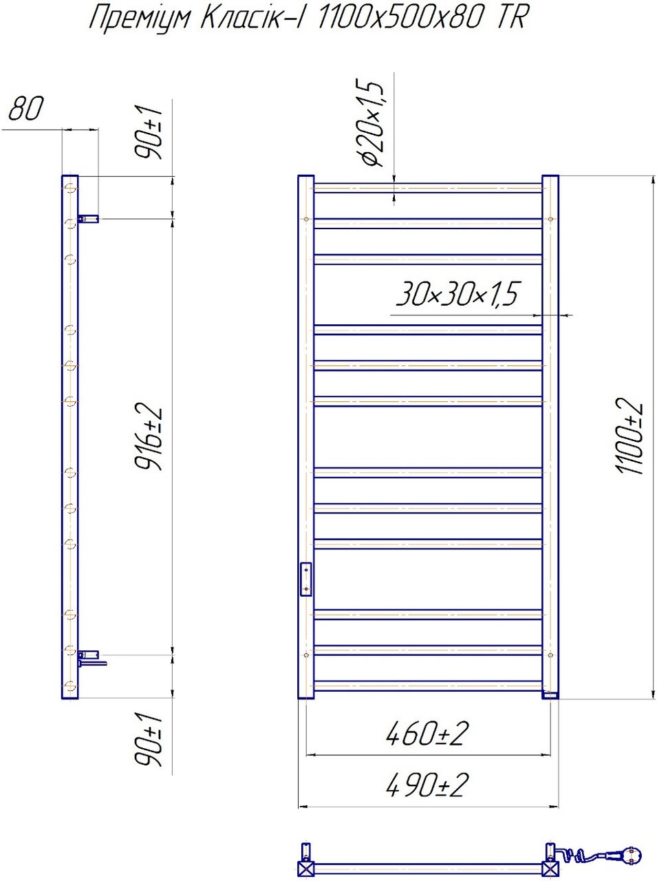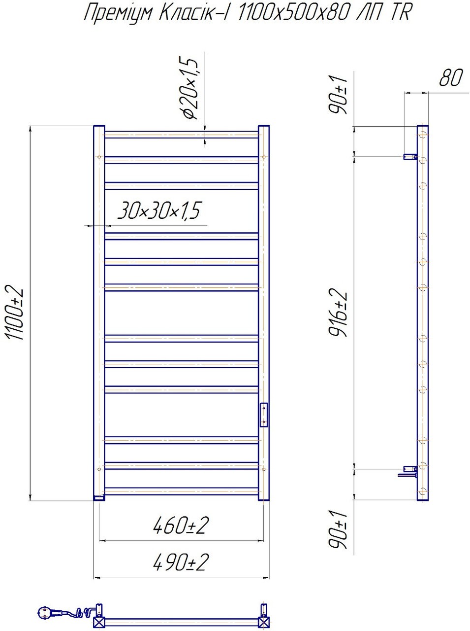 Рушникосушарка Преміум Класік- I — електрична рушникосушарка з таймер-регулятором, бічні труби виготовлені з профільної (квадратної) труби.