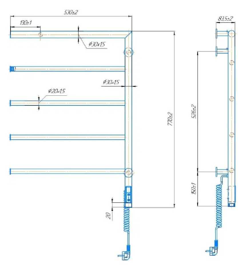 Рушникосушарка електрична MARIO Romeo-І 770 х 530 ТR лівий таймер-регулятор