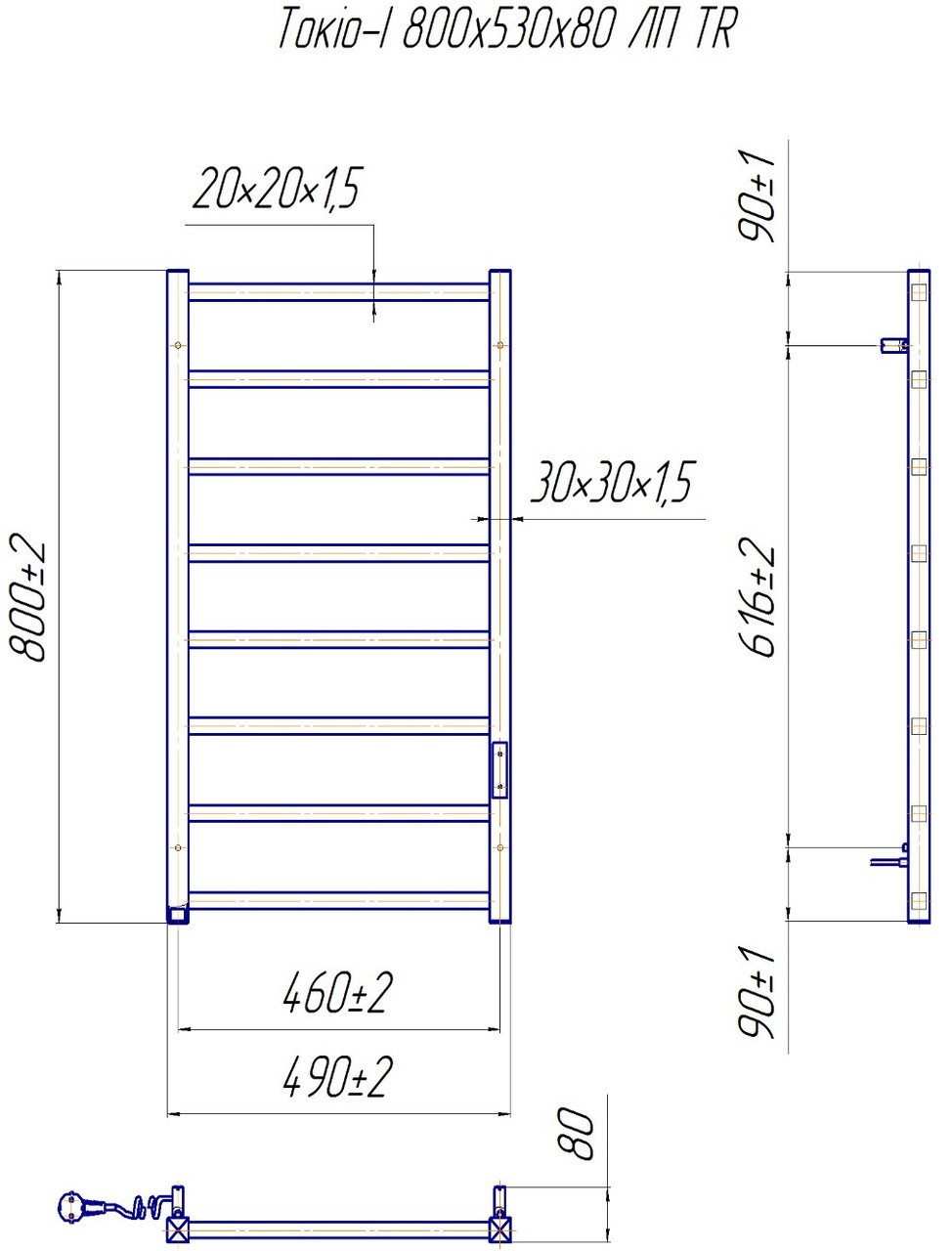 Рушникосушарка Токіо-I — електрична рушникосушарка з таймер-регулятором, перемички і бічні труби виготовлені з профільної (квадратної) труби