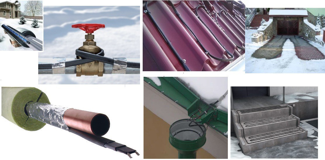 Для систем захисту від промерзання трубопроводів і резервуарів — обігрівання трубопроводів, каналізації та резервуарів, розташованих у неопалюваних приміщеннях. Кабель укладається на трубу або ємність за допомогою липкої алюмінієвої стрічки (алюмінієвий скотч) а потім — теплоізолятор.