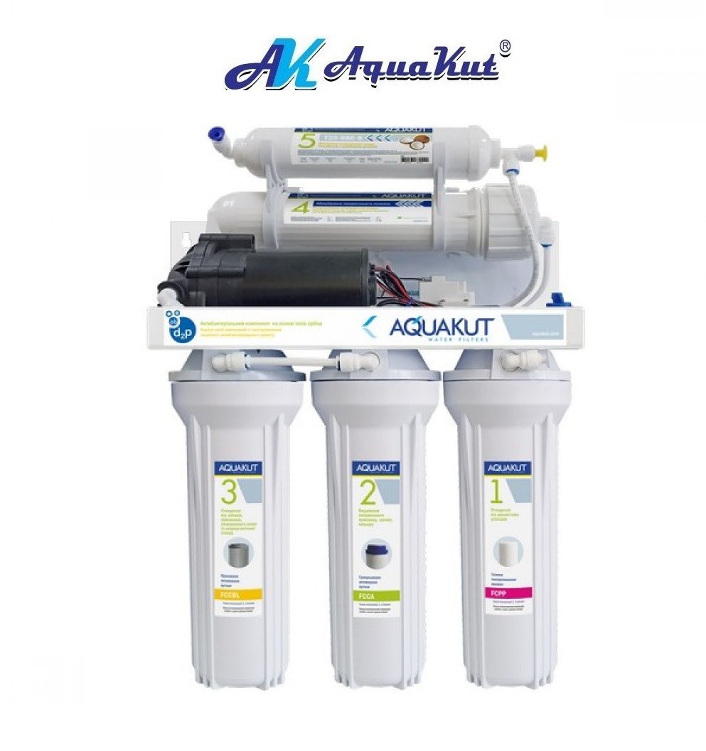 Характеристики: Осмос Аква Кут з помпою 50G RO-5 А-01 з пластиковим баком 3,2G