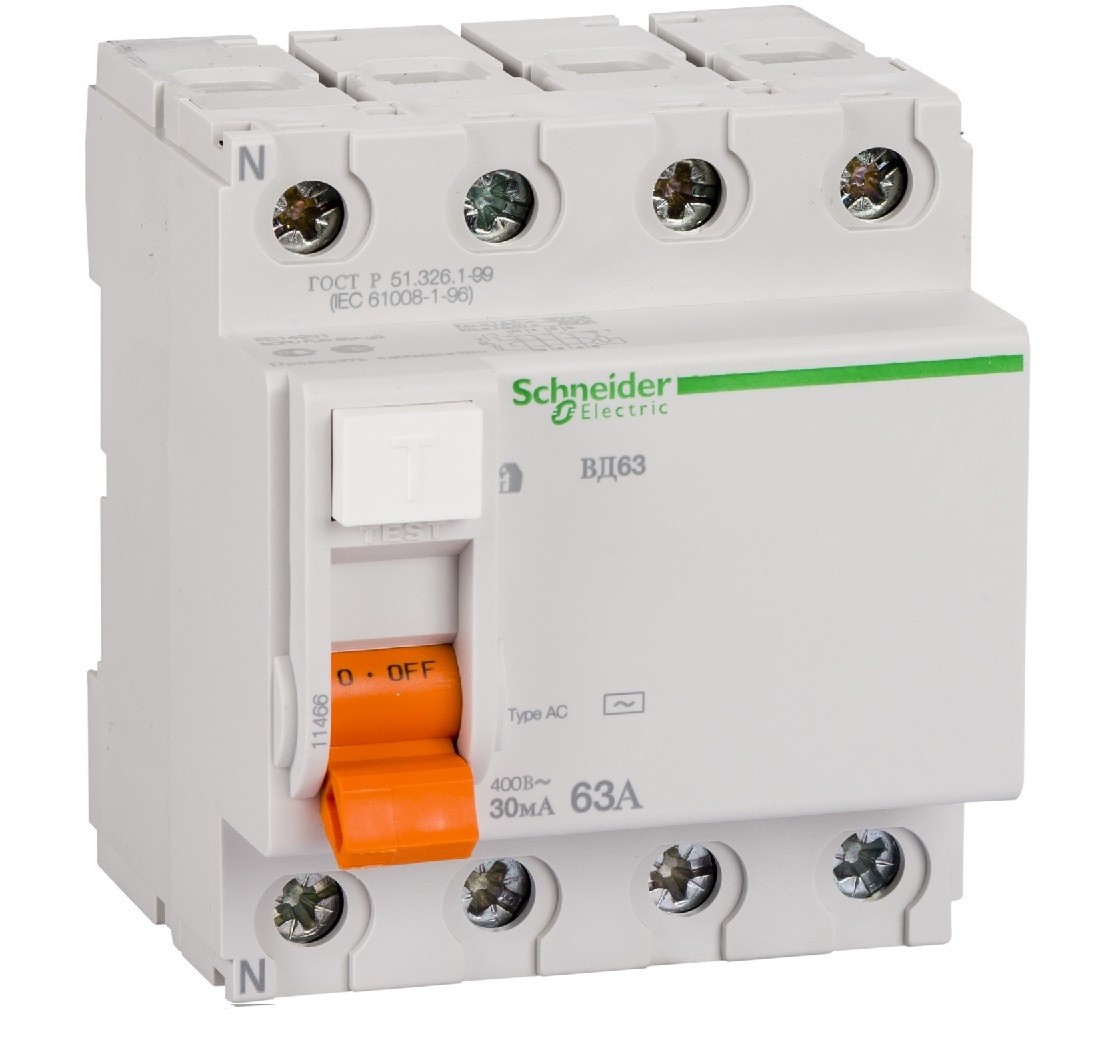 Диференціальні вимикачі (ПЗВ) Schneider Electric ВД 63 серії "Домовий".(УЗВ — пристрої захисного вимкнення).