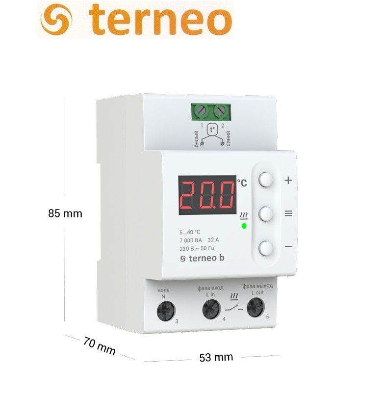 Цифровий терморегулятор підвищеної потужності Terneo b 32 А — поліпшена модель електронного терморегулятора для теплої підлоги з надійнішими клемами. Корпус терморегулятора  виготовлений із самозагасного полікарбонату. Модель стійка до стрибків напруги та аварій у мережі 220 В. Перепади напруги в електромережі — нерідко явище, яке несприятливо впливає на роботу всіх електроприладів у будинку, зокрема й на тепла підлога. Для запобігання такому негативному. впливу необхідно використовувати терморегулятори, що мають підвищений запас потужності, як-от terneo b 32A.
