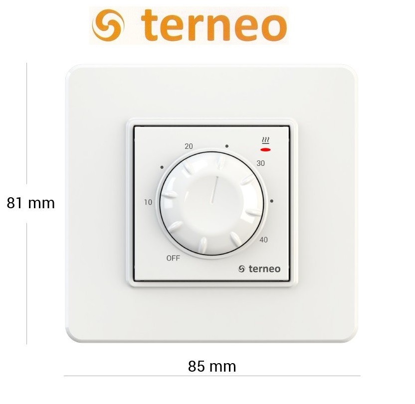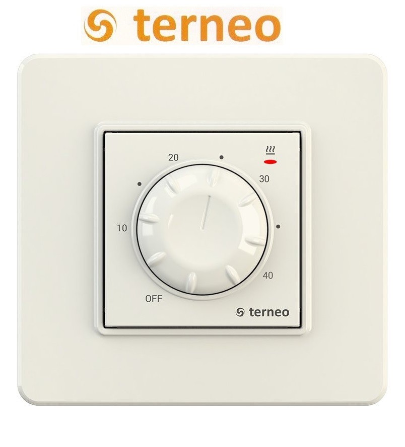 Електронний терморегулятор для теплої підлоги TERNEO rtp — недорога модель механічного терморегулятора для теплої підлоги з виносним датчиком температури та з можливістю спільного монтажу з іншою фурнітурою. Увімкнення і вимикання здійснюється за допомогою регулювального коліщатка.