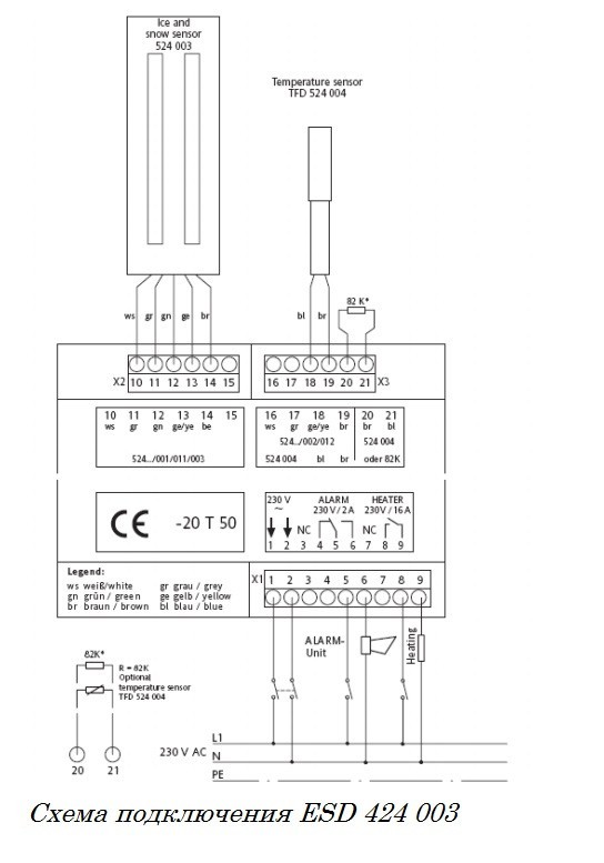 Датчик встановлюється в жолобі або водостічній трубі на сонячній стороні будівлі. Контактна частина датчика має бути розташована назустріч потоку талої води.