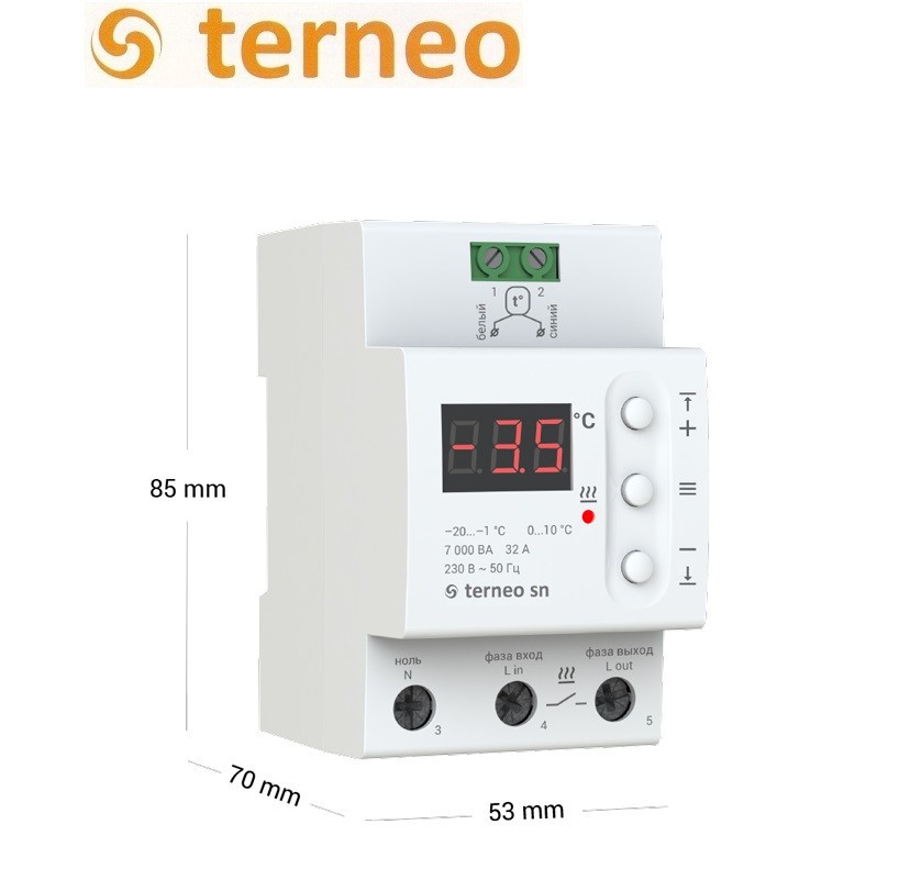 Терморегулятор Terneo sn 32A — електронний терморегулятор підвищеної потужності здатний без проблем витримати чималий стрибок напруги. Електронний терморегулятор Terneo sn 32A предназначен для керування системою сніготиння або антиобледенення. Нагрівання увімкнене, коли температура між верхнім і нижнім межами температури.