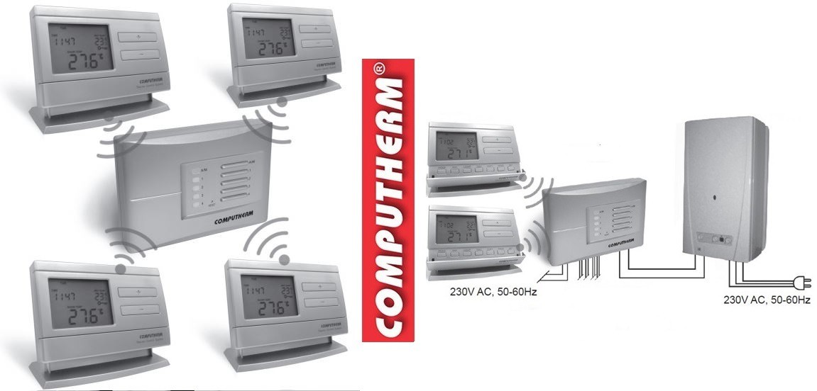 Термостати мобільні, не вимагають електричного кабелю під'єднання до котла опалення, вони є передавачами, які надсилають радіочастотні сигнали на приймач. Підходять для керування COMPUTHERM Q1RX і COMPUTHERM Q8RF.