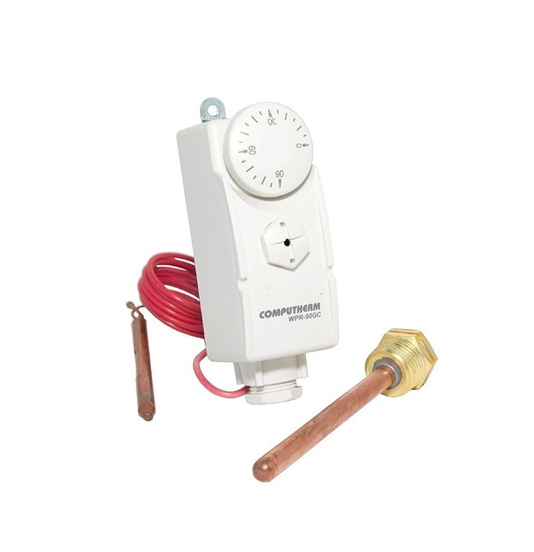 Термостат для водонагрівачів з капілярною трубкою COMPUTHERM WPR-90GC є регулятором температури та застосовується для керування температурним режимом систем опалення за допомогою регулювання температури відповідних або зворотних трубопроводів і керування насосами, пальниками, електротермічними приводами, солярними системами, тепловими насосами. Функціонування термостата ґрунтується на принципі теплового розширення рідини, що міститься в спеціальній капсулі. Це забезпечує точніше та швидше реагування на зміну температури.