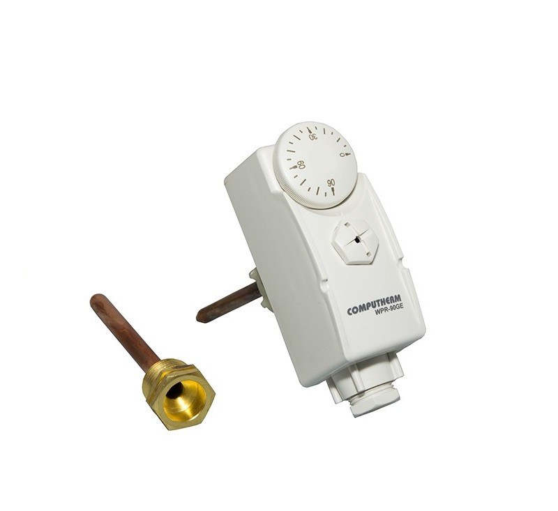 Термостат для водонагрівачів з капілярною трубкою COMPUTHERM WPR-90GE є регулятором температури та застосовується для керування температурним режимом систем опалення за допомогою регулювання температури відповідних або зворотних трубопроводів і керування насосами, пальниками, електротермічними приводами, солярними системами, тепловими насосами. Функціонування термостата ґрунтується на принципі теплового розширення рідини, що міститься в спеціальній капсулі. Це забезпечує точніше та швидше реагування на зміну температури.