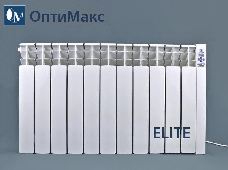 Електричний радіатор (електрородиатор) Оптимакс® ELITE  — призначений для повноцінного автономного опалення  приміщень будь-якого типу або для допоміжного опалення. Електрорадіатори Оптимакс виробляються двох типів — Elite і Standard. Відмінність між ними полягають у різній комплектації секцій.  Радіатор серії Elite має велику площу тепловіддання завдяки масивнішим реберам усередині самої секції. Так, вага однієї секції серії Elite становить 1,7 кг, а Standard — 1,2 кг.  Відличити візуально секції нагрівачів серії Elite от Standard дуже просто. Радіатори  Elite мають ширину лицьової пластини будь-якої із секцій електрорадіатора 7,5 см, а тильного — 6,2 см. У Standard - відповідно 6,8 і 4 см. Тепловіддача Elite становить 202 Вт, а Standard — 160 Вт, ефективність Elite на 15-20% краща, ніж у Standard. Електрорадіатор простий у встановленні та використанні — компактний і зручний, ви легко можете перемістити нагрівач у зручне для Вас місце обігріваного приміщення — можна легко встановити на стіну або на підставку. Обладнаний програмним терморегулятором.