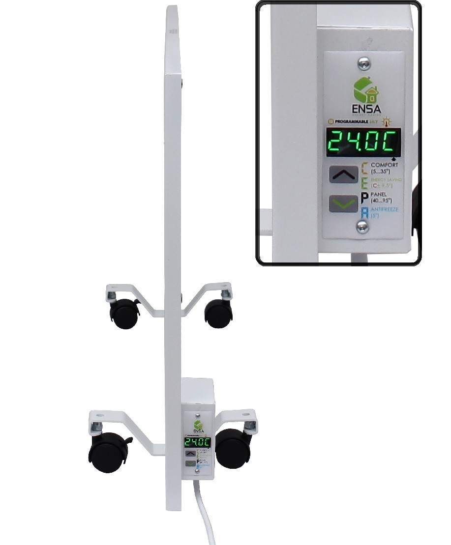 Настінна теплова панель ENSA P750Е з вбудованим програмованим терморегулятором являє собою універсальний обігрівач для будь-якого типу приміщень (житлового та нежитлового) з можливістю монтажу на стіну або з використанням підставок (ніжок).