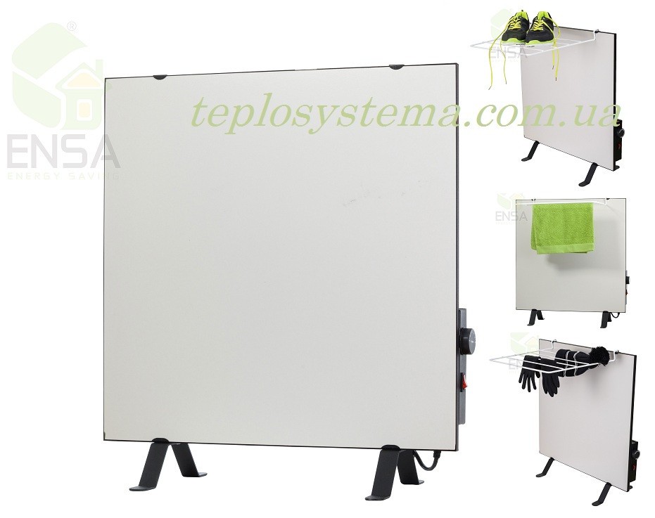 Інфрачервона керамічна теплова панель ENSA КЕРАМІК CR 500 Т WHITE — панельний нагрівач монтований на стіну або встановлюється на ніжки, додатково укомплектована вбудованим термостатом (4 режими регулювання). Принцип роботи керамічної тепловий панели ENSA КЕРАМІК CR 500 Т WHITE заснований на одночасному використання двох різновидів теплопередавання: