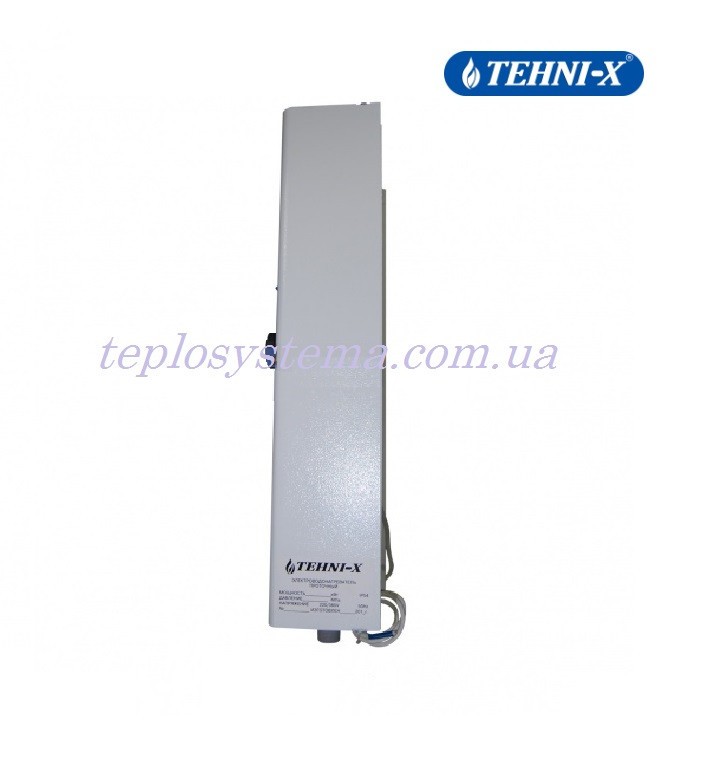 Електричний котел TEHNI-X являє собою компактний корпус, всередині якого розміщений теплообмінник із блоком ТЕНів, триступеневий блок електронного керування ТЕНами: терморегулятор (режим регулювання до 90oС); магнітний пускач; реле напруги; клемний блок на 220 і 380 В.