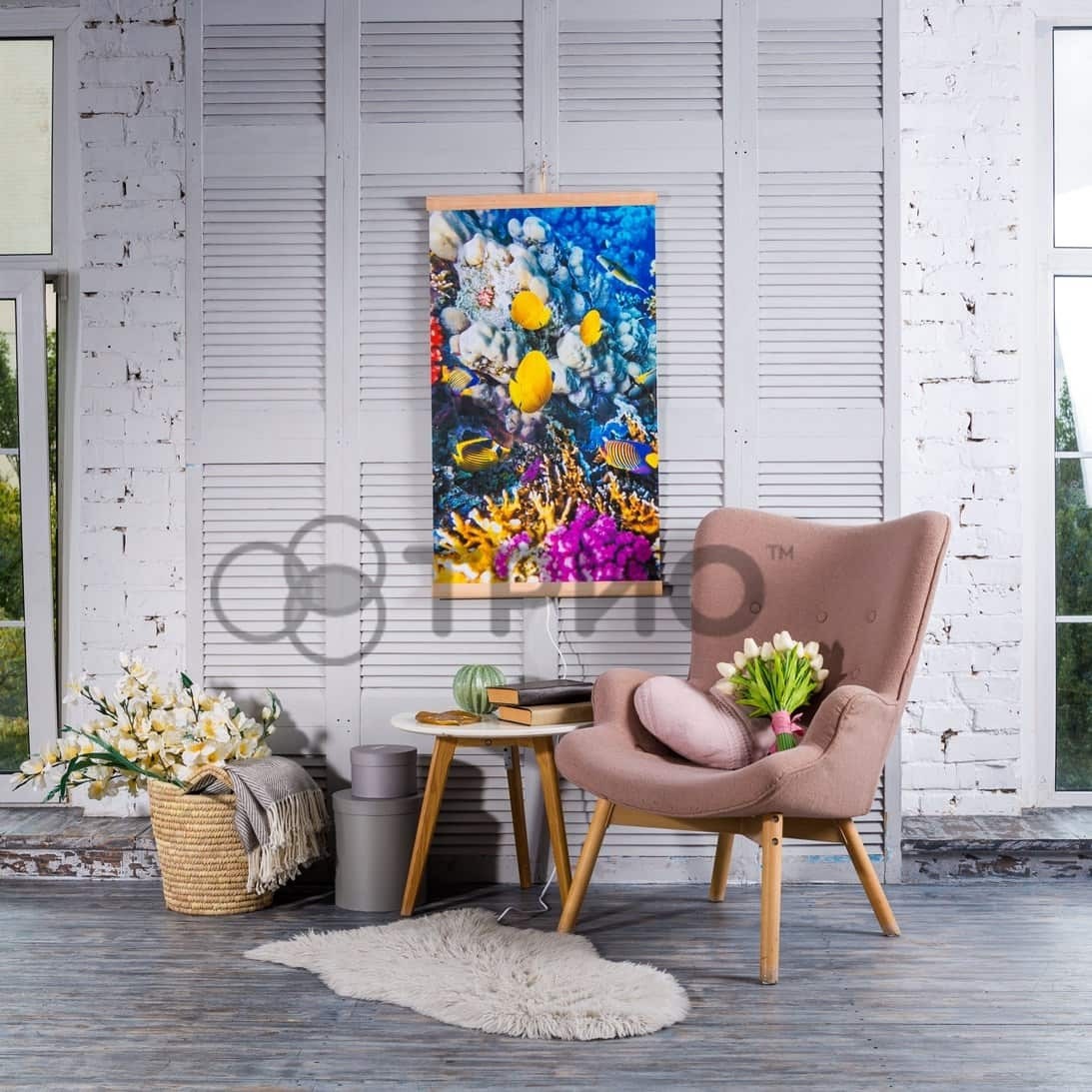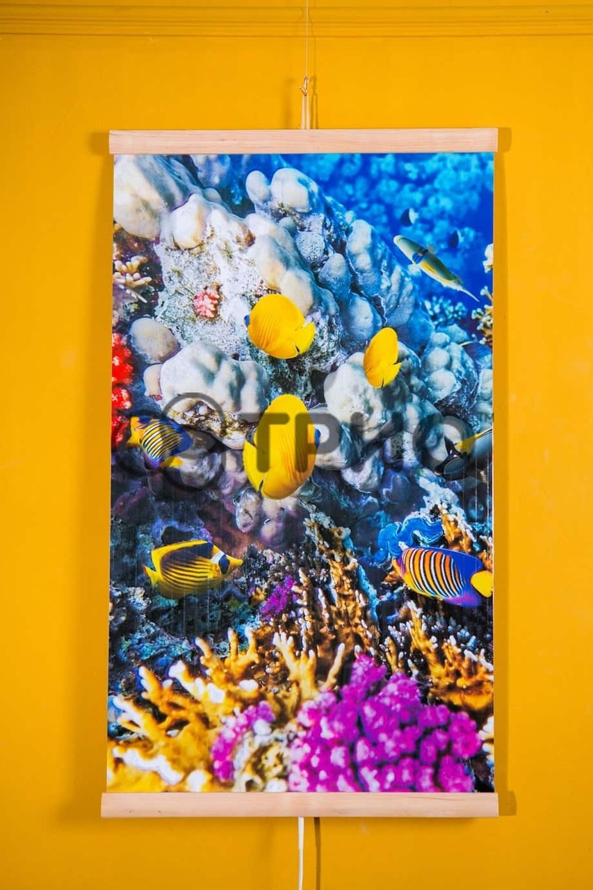 Інфрачервоний настінний плівковий обігрівач (картина) КОРАЛОВИЙ РИФ (рибки) Тріо Україна