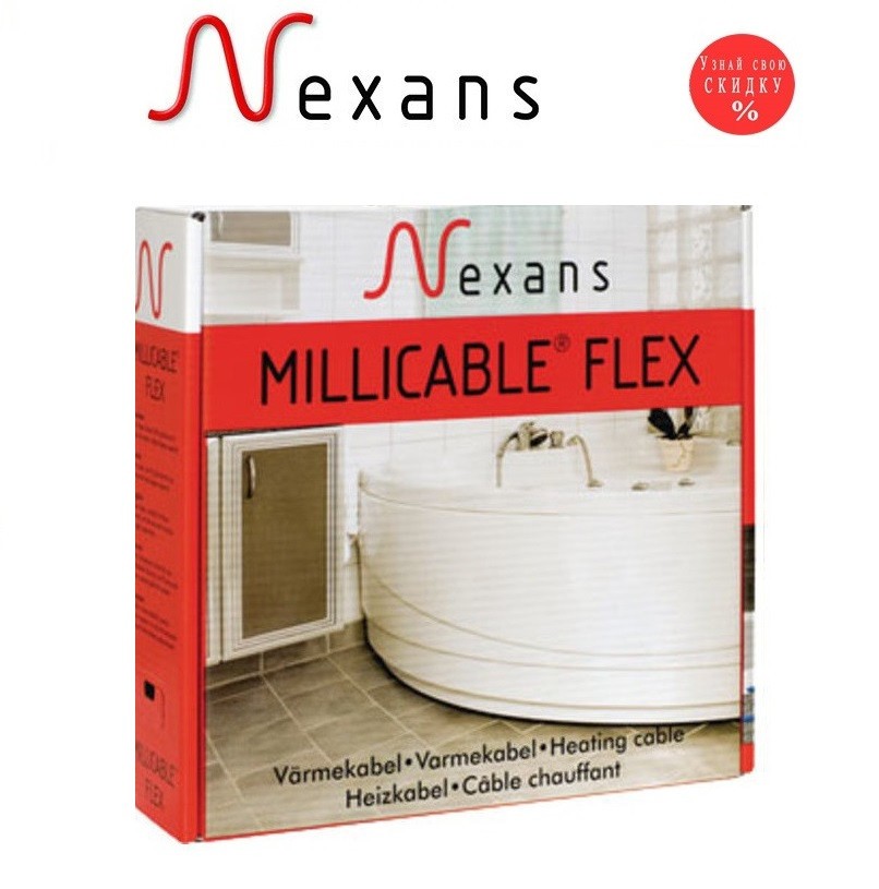 Нагрівальний кабель Nexans Millicable Flex 15 (15Вт/м) 1800 Вт Норвегія — тонкий кабель з екраном із суцільної алюмінієвої трубки (без сітки з клейкою основою) розроблений і виробляються компанією Nexans в Норвегії для системи теплої підлоги, яка монтують безпосередньо під плитку в клей, водночас висота клею буде мінімальна (5-8 мм), тому що тонкий нагрівальний кабель Nexans Millicable Flex 15 (15Вт/м) обладнаний системою БЕЗМУФТОВОГО З'ЄДНАННЯ). З'єднання грючого кабелю з поживним дротом зроблене так, що сама муфта проходить під захисним екраном і зверху прокладена суцільна тефлонова ізоляція. Такий спосіб з'єднання усуває проблеми, пов'язані зі з'єднанням дротів у муфті звичайним способом і перериванням суцільної ізоляції під термоусадковою трубкою. З'єднання без муфти в місці з'єднання холодного та нагрівального кабелів робить кабель абсолютно водонепроникним і ідеальним для використання у вологих приміщеннях.