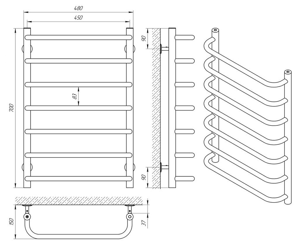 ТЕХНІЧНІ ХАРАКТЕРИСТИКИ рушникосушарки LARIS Стандарт П7 450 х 700