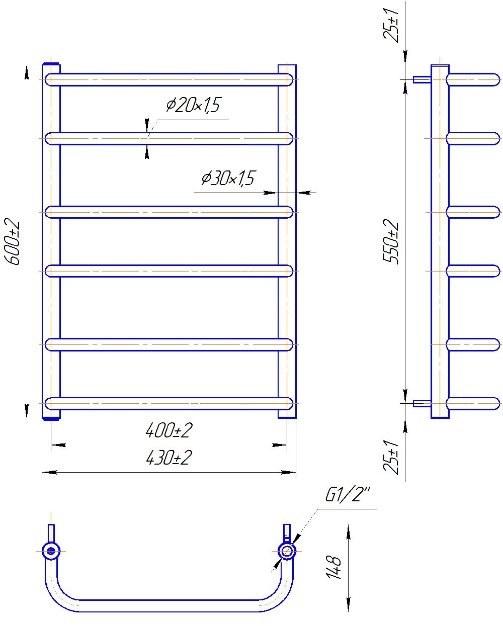 ТЕХНІЧНІ ХАРАКТЕРИСТИКИ рушникосушарки MARIO Стандарт 600 х 430/400 (водяний)