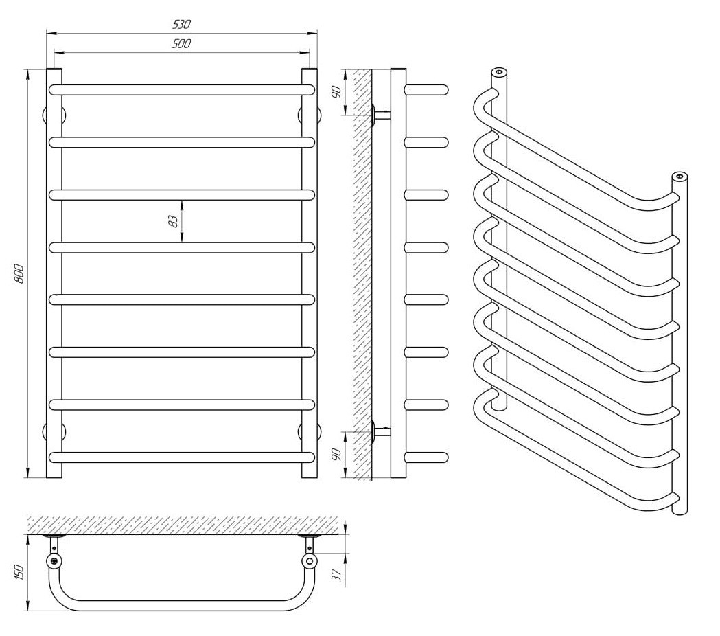 ТЕХНІЧНІ ХАРАКТЕРИСТИКИ рушникосушарки LARIS Стандарт П8 500 х 800
