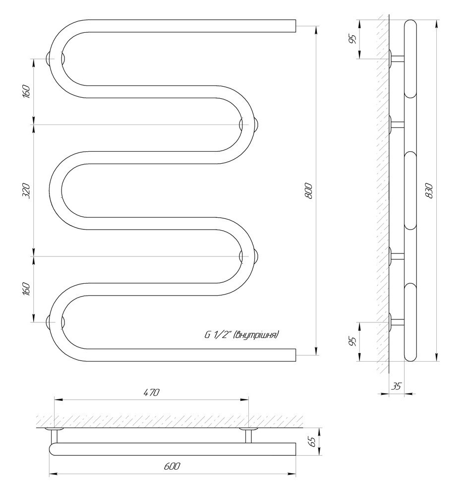 ТЕХНІЧНІ ХАРАКТЕРИСТИКИ рушникосушарки LARIS Змійовик 30 РС5 600 х 800 1/2'' водяної