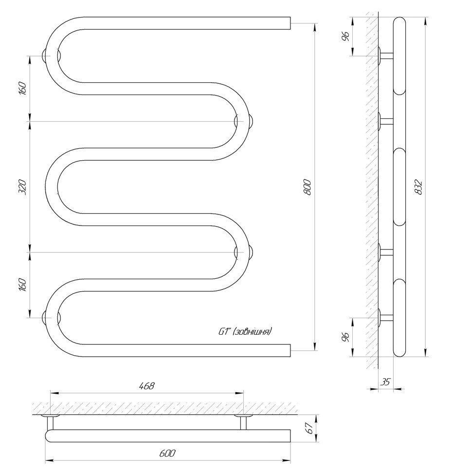 ТЕХНІЧНІ ХАРАКТЕРИСТИКИ рушникосушарки LARIS Змійовик 32 РС5 600 х 800 1''