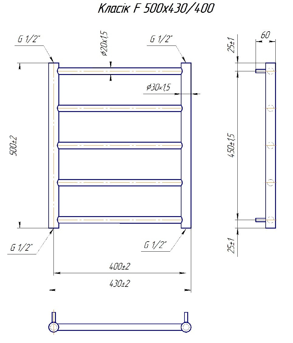 ТЕХНІЧНІ ХАРАКТЕРИСТИКИ рушникосушарки MARIO Класік F 500х430/400
