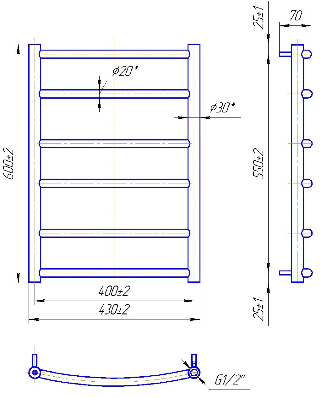 ТЕХНІЧНІ ХАРАКТЕРИСТИКИ рушникосушарки MARIO Класік 600 х 430/400 (водяний)