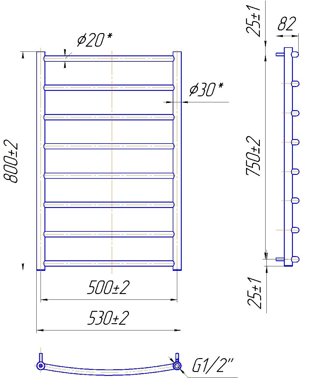 ТЕХНІЧНІ ХАРАКТЕРИСТИКИ рушникосушарки MARIO Класік 800 х 530/500 (водяний)