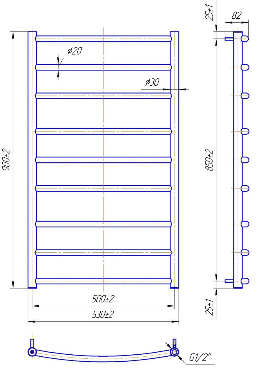 ТЕХНІЧНІ ХАРАКТЕРИСТИКИ рушникосушарки MARIO Класік 900 х 530/500 (водяний)