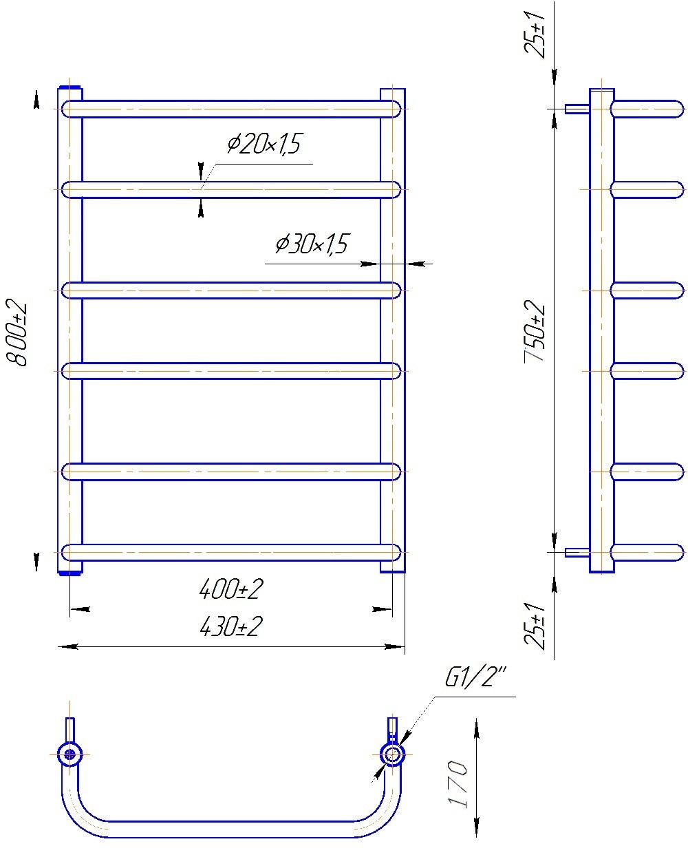 Рушникосушарка водяна  MARIO Стандарт HP 800x430/400 - Основні контакти 01
