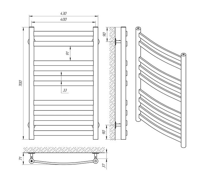 ТЕХНІЧНІ ХАРАКТЕРИСТИКИ рушникосушарки Laris Кватро Класік П9 400 х 700