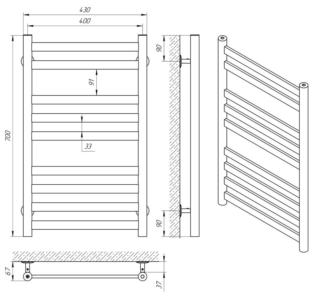 ТЕХНІЧНІ ХАРАКТЕРИСТИКИ рушникосушарки Laris Кватро П9 400 х 700